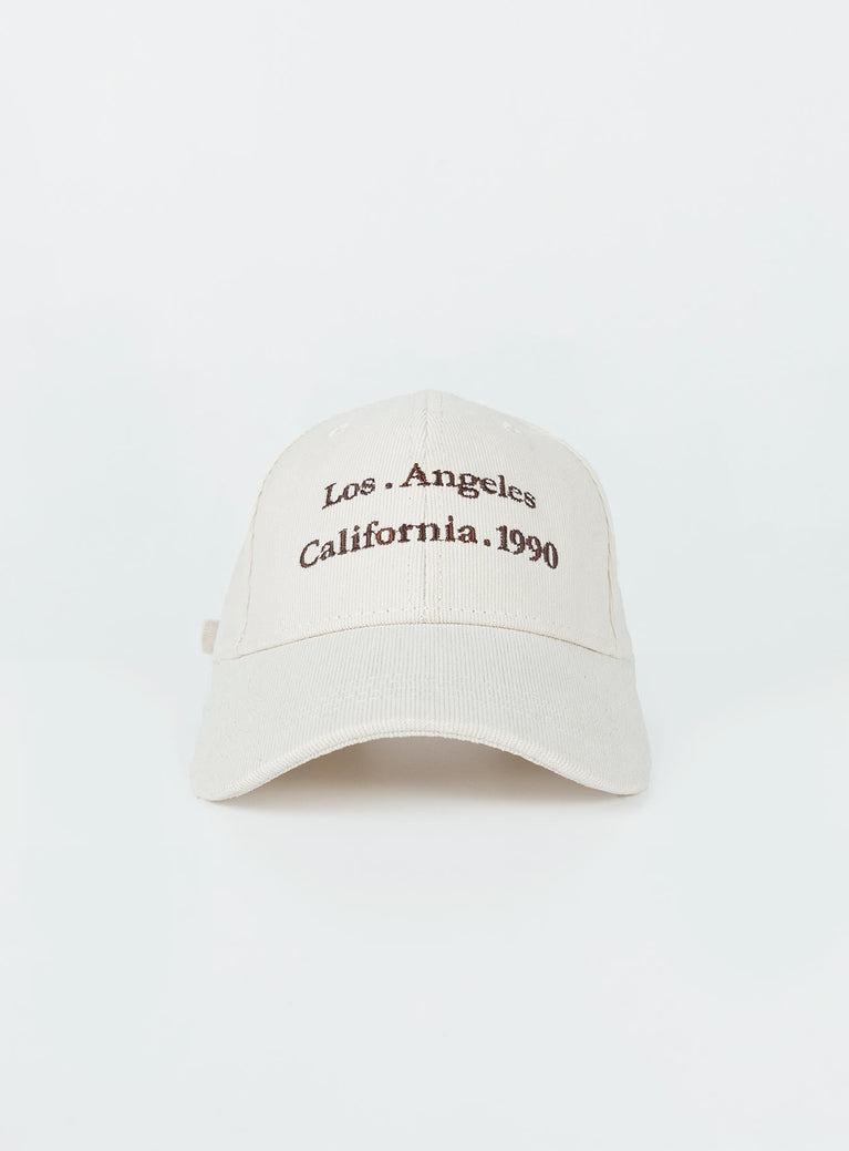 Cap Corduroy material Embroidered graphic Adjustable strap at back