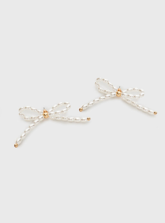 Earrings  Pearl bow design, gold-tone hardware, stud fastening