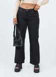 Jeans Black denim Belt looped waist Classic five-pocket design Zip & button fastening Low-rise Wide leg