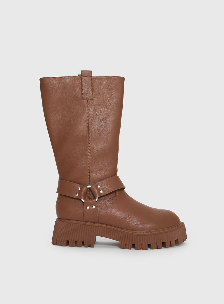 - Buckle detail, silver-toned hardware, zip closure, side pull tabs, rounded toe, platform style, treaded sole