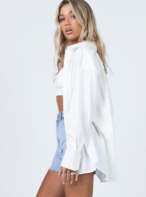 product Princess Polly Three Fourth Sleeves High Neck  Adalia Shirt White