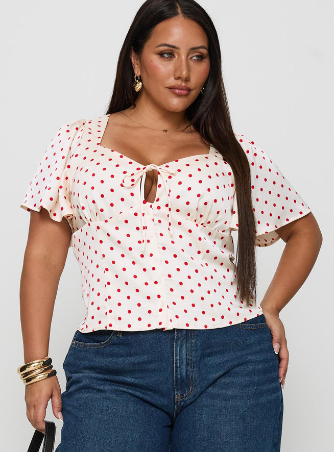 - Cut-out detail with tie fastening, soft ruched bust, front button fastening, flutter sleeves