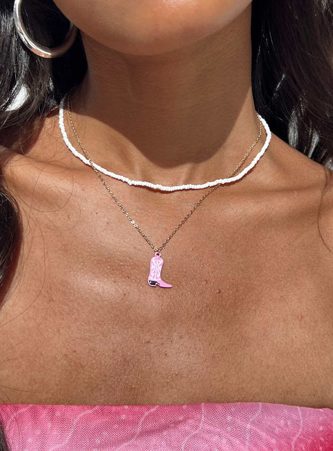 Necklace Gold toned Pearl detail Cowboy boot drop charm Lobster clasp fastening