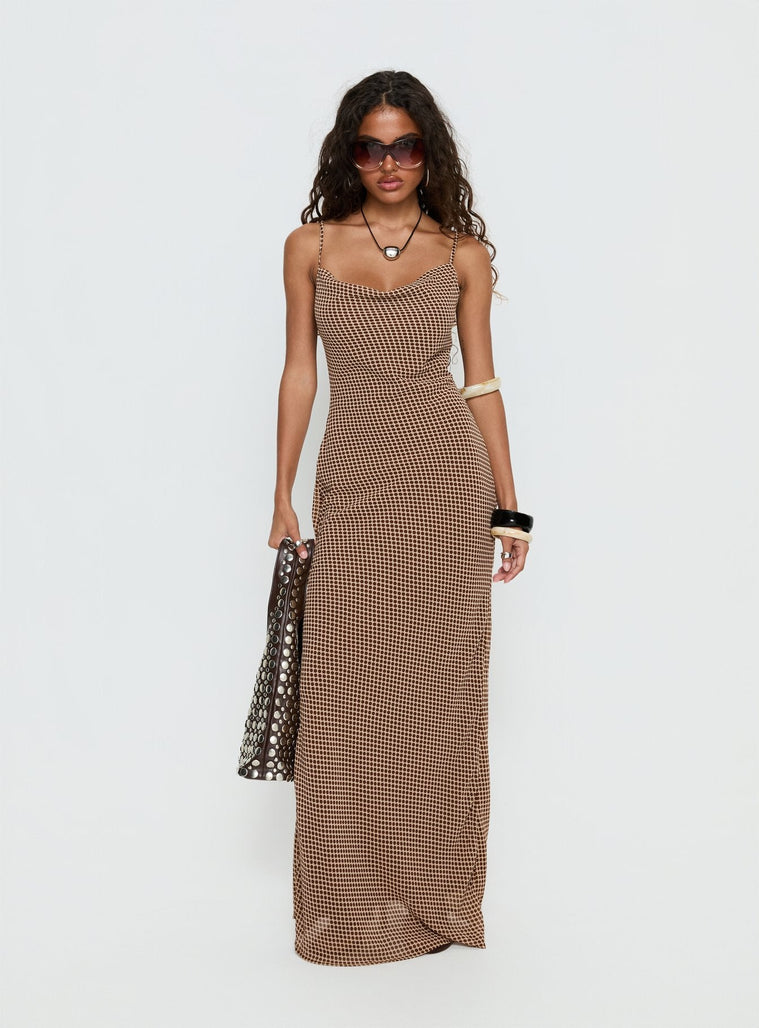 - Maxi dress with cowl neckline