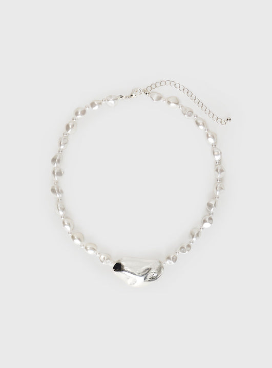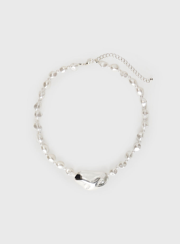 Silver-toned necklace Pearl detail, large pendant, lobster clasp fastening
