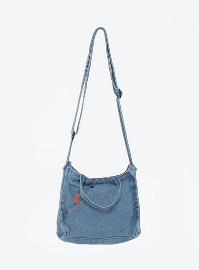 Denim crossbody bag Adjustable crossbody strap, fixed shoulder straps, zip fastening