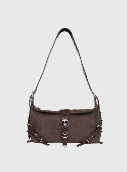- Washed faux leather & suede material, buckle detailing, adjustable strap, snap button & zip fastening, silver-toned hardware, one main compartment with internal pockets, flat base