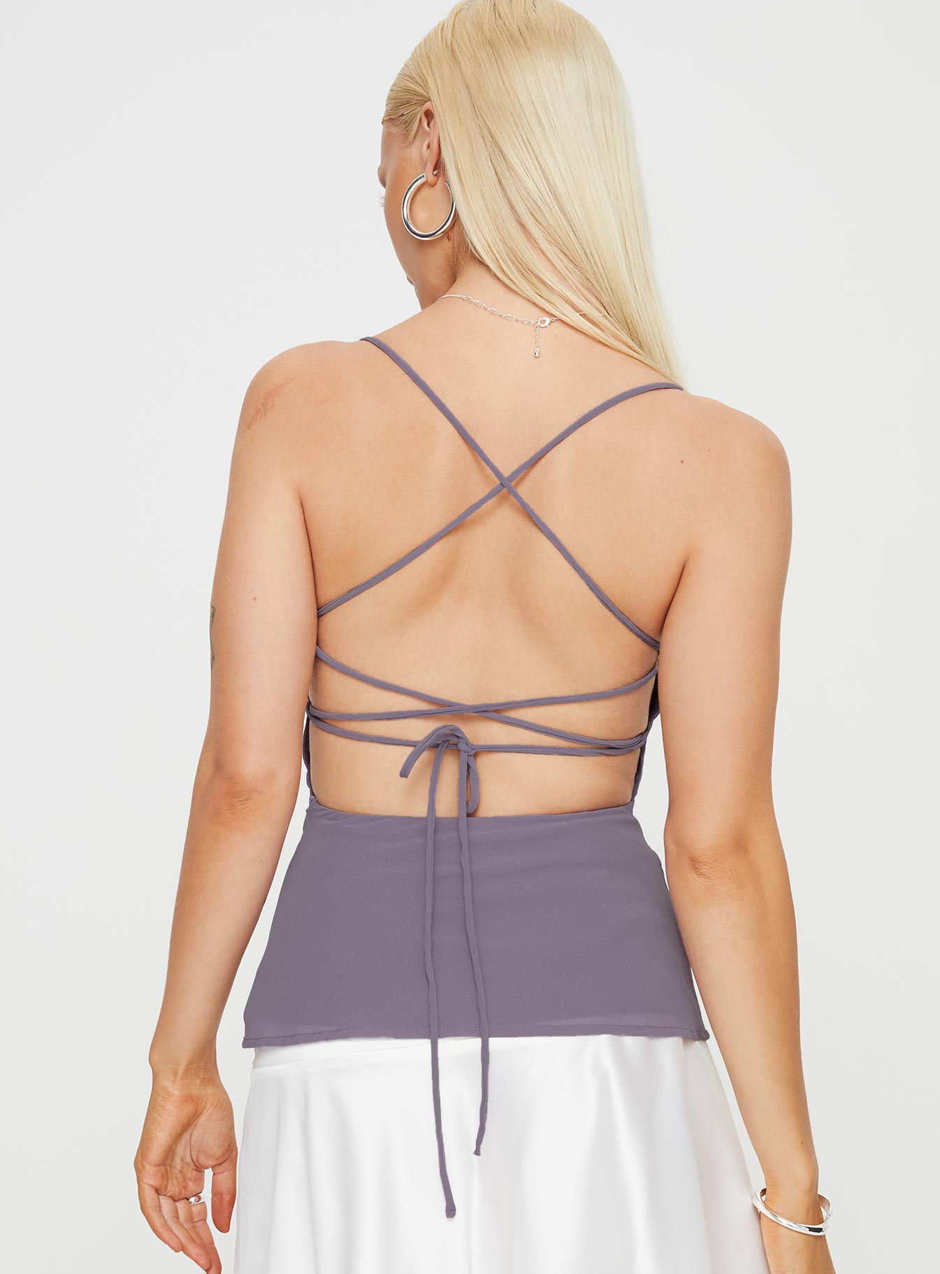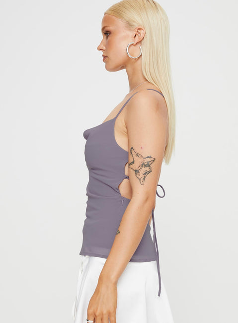 Purple Cowl neck top lace up back