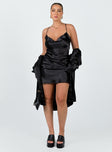 Matching set Silky material  Oversized shirt  Button front fastening  Twin chest pockets  Mini slip dress Cowl neckline  Tie back fastening  Invisible zip fastening at side