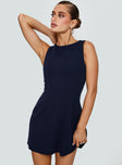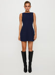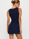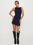 back view of model wearing Princess Polly Anse Mini Dress Navy Crew Neck