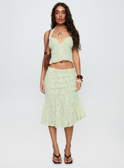 Aspyn embroidered midi skirt sage green
