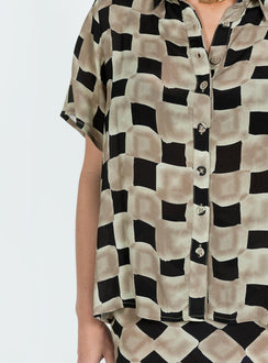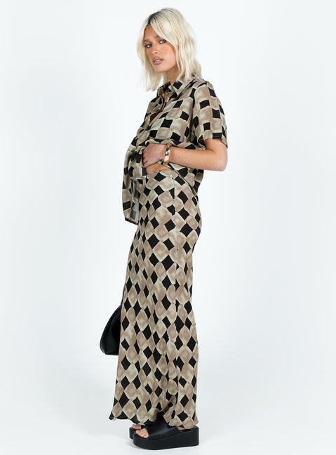 Matching checker print set, relaxed fit Button-up shirt, classic collar, button fastening at front, single chest pocket, drop shoulder Mid-rise maxi skirt, invisible zip fastening at side