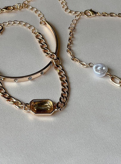 Bracelet Pack of three One bangle style Pearl & diamante detail Lobster clasp fastening Gold-toned