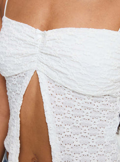 - Straight neckline, elasticated straps, bow detail, split hem