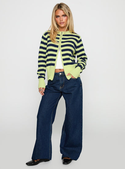 - Stripe print, crew neckline, double zip-up closure, fitted hem, ribbed detail, drop shoulders