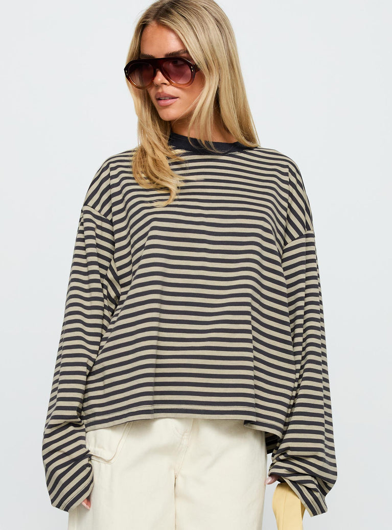 Bloom Long Sleeve Top Beige Stripe has a rating of 4.9 stars based on 87 reviews.
