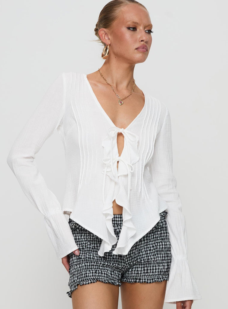Bonheur Ruffle Long Sleeve Top White has a rating of 4.2 stars based on 12 reviews.