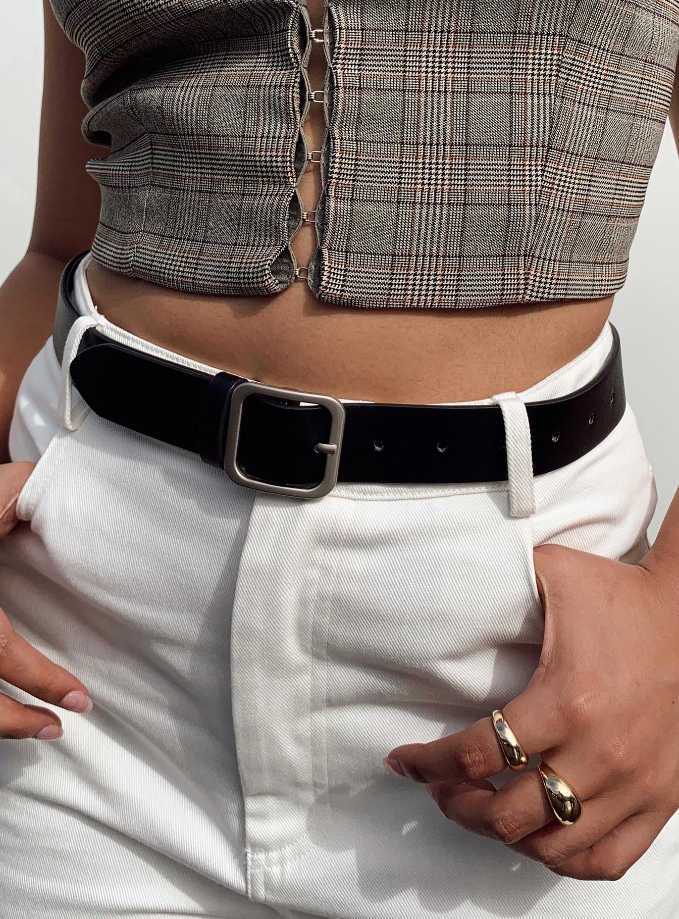 Belt  90% PU 10% zinc alloy Faux leather material  Silver-toned buckle