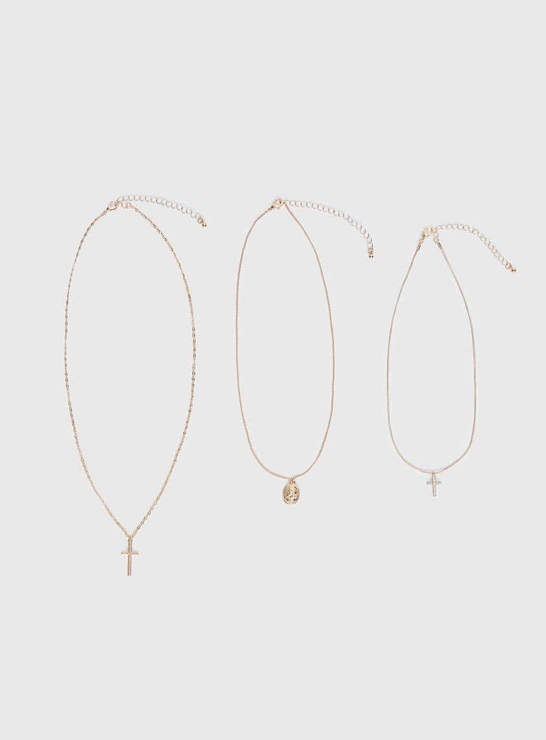 - Gold-toned hardware, multi-charm design, diamante & cross detail, lobster clasp fastening, adjustable length