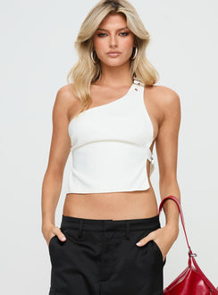 product Princess Polly Buckled Down One Shoulder Top White Sleeveless Asymmetric Neckline
