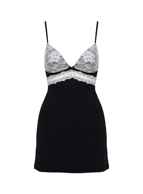 - V neckline, lace detail, adjustable straps