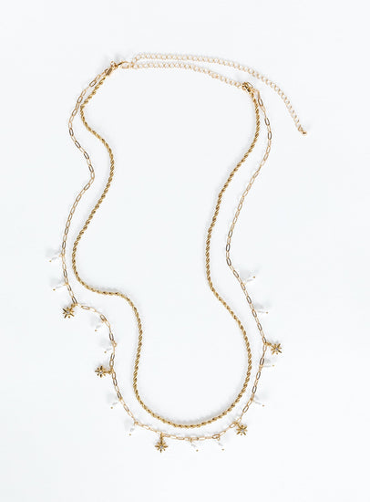 Gold-toned chain belt Drop charms, lobster clasp fastening, diamante and pearl detail