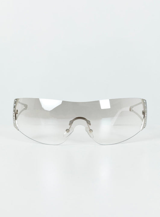 Sunglasses Frameless design Silver-toned Silicone nose pads Diamante detail Clear lenses Lightweight