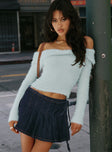 Front view of model wearing  front Camelia Pleat Mini Dark Denim Princess Polly  Mini Skirts