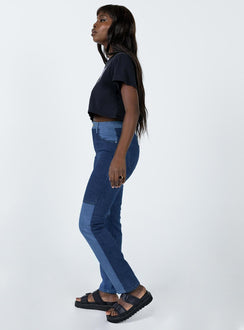 side view of model wearing Princess Polly Cameron Denim Jeans Mid Rise