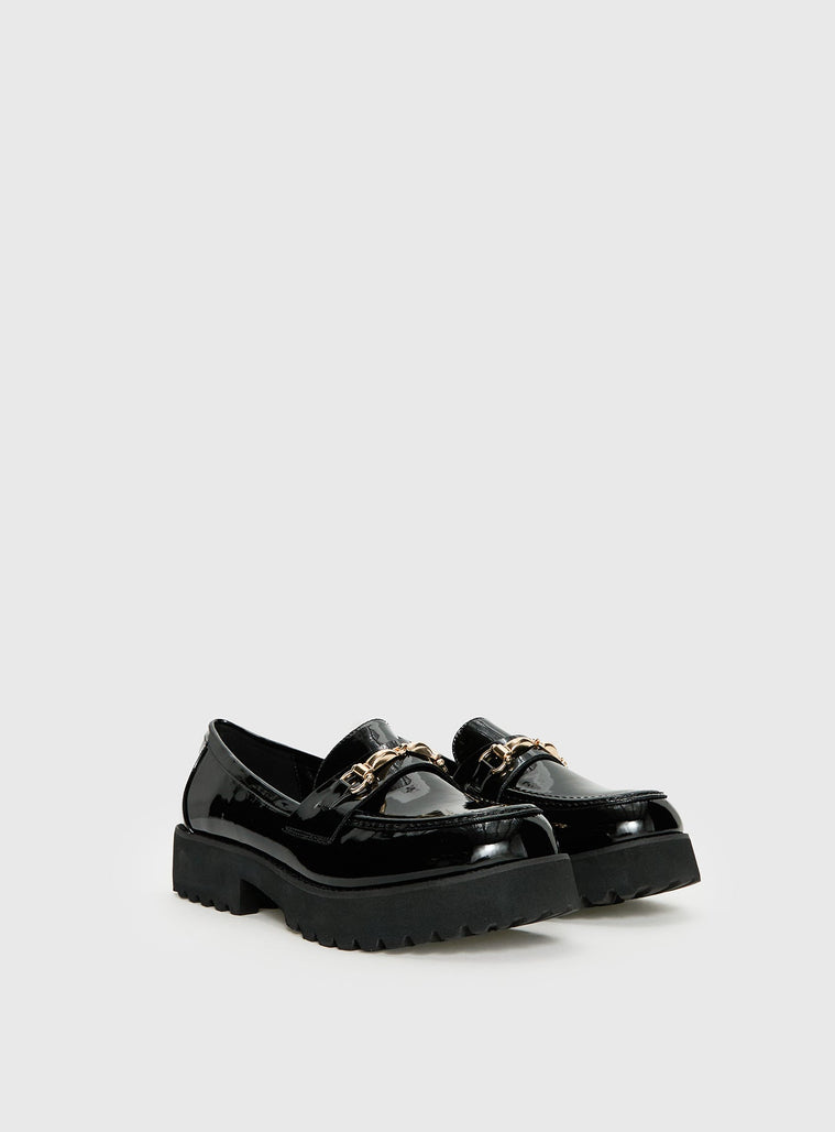 Loafers Man-made upper, lining & sole Faux patent leather Gold-toned snaffle detail Platform base  Treaded sole
