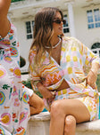 Front view of model wearing  front Princess Polly Three Fourth Sleeves V-Neck  Caraliia Shirt Multi