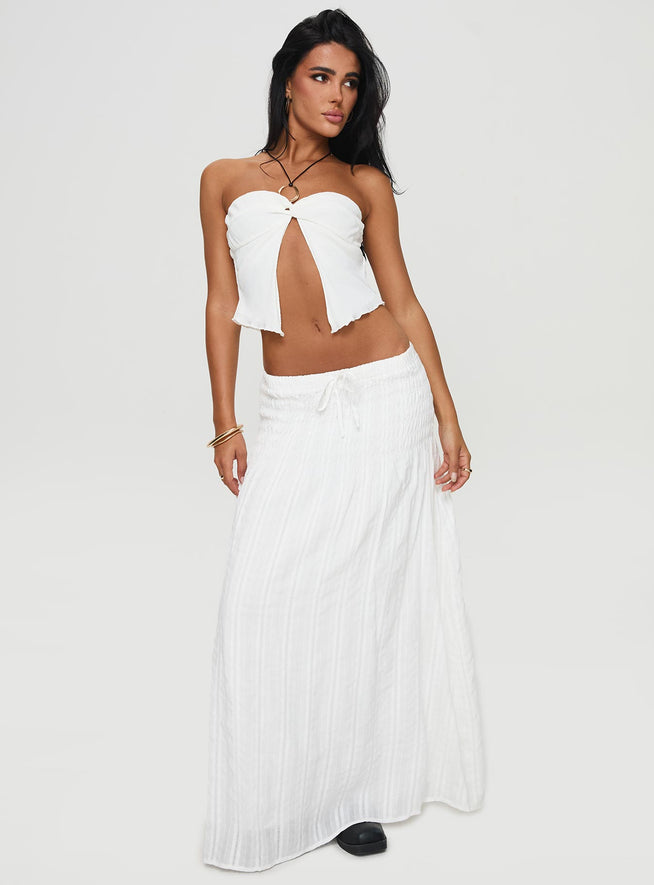 front view of model wearing Princess Polly Carana Maxi Skirt White Maxi