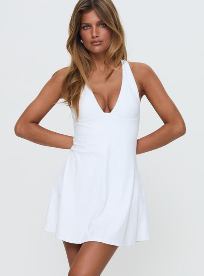 - V-neckline, removable pads bust detail, fixed shoulder strap, racerback back design, branded logo at back, built-in shorts , relaxed fitting