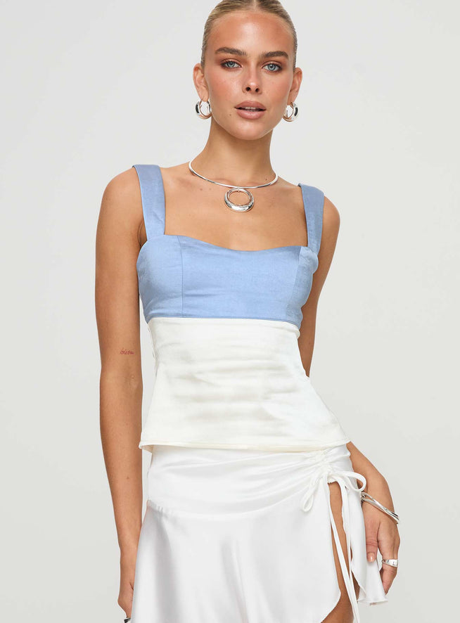 product Princess Polly Chantell Top Blue / White Sleeveless Sweetheart