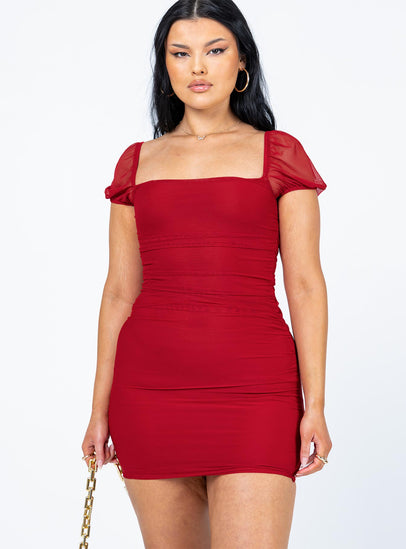 product Princess Polly Asymmetric Neckline  Charvi Mini Dress Burgundy