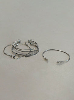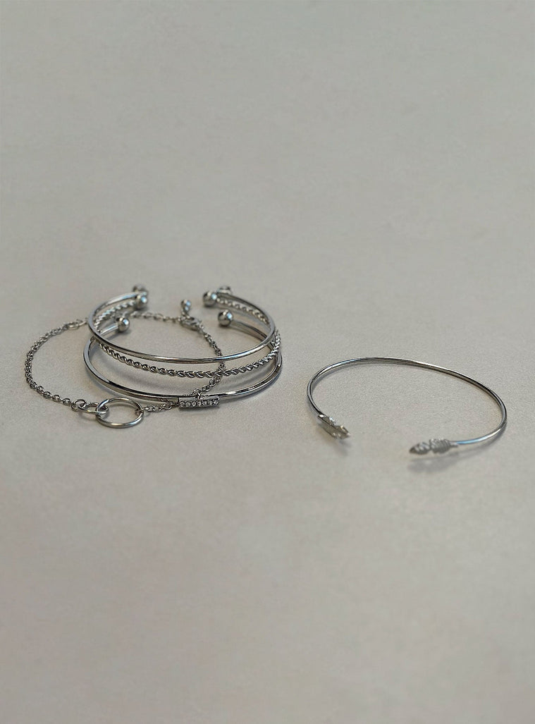 Bracelet pack Silver toned Pack of five Diamante detail Four bangle style One lobster clasp fastening Lightweight