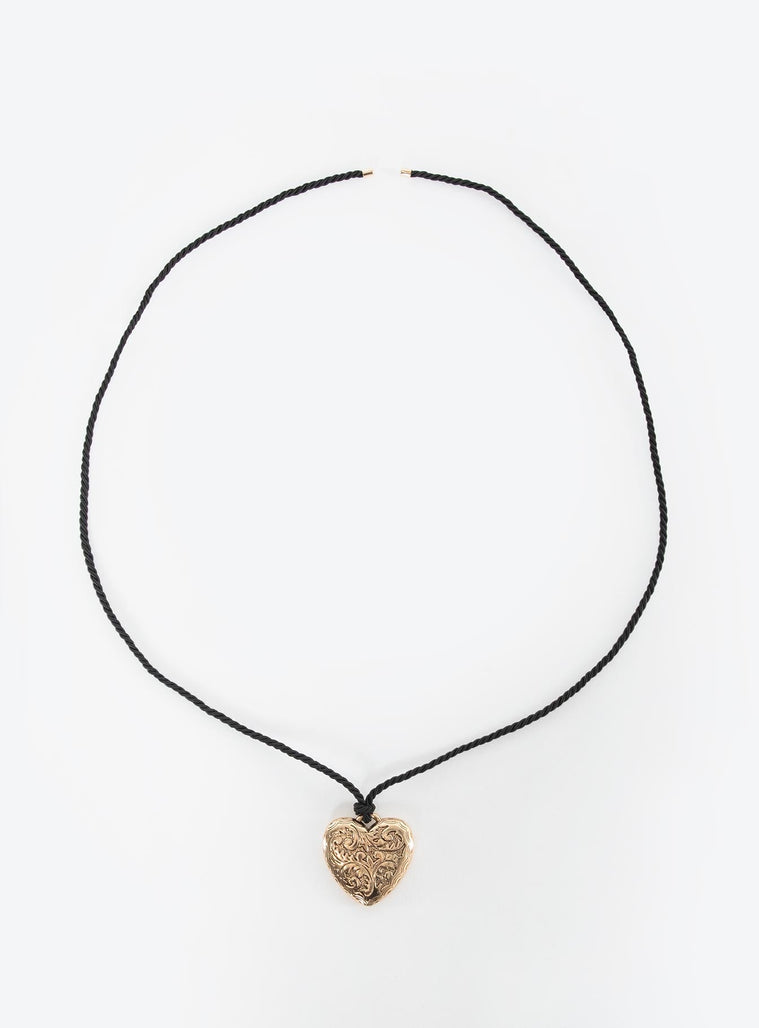 Gold-toned heart pendant necklace Cord style chain, tie fastening