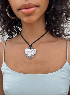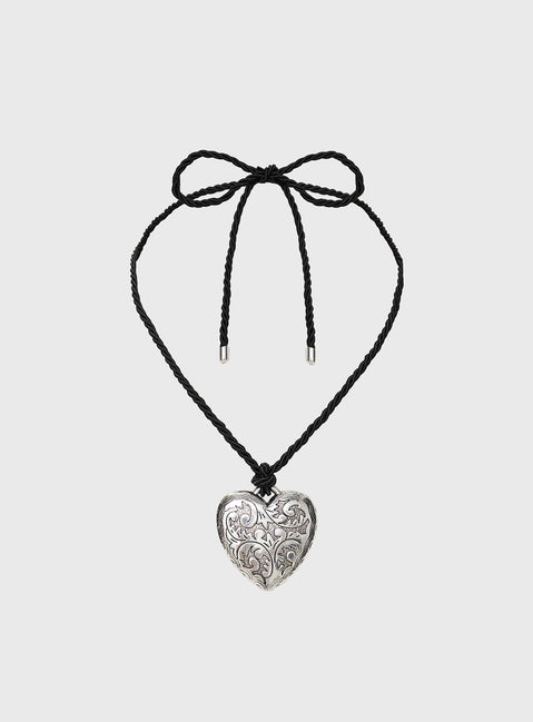 Necklace Cord style chain Silver-toned heart pendant Tie fastening