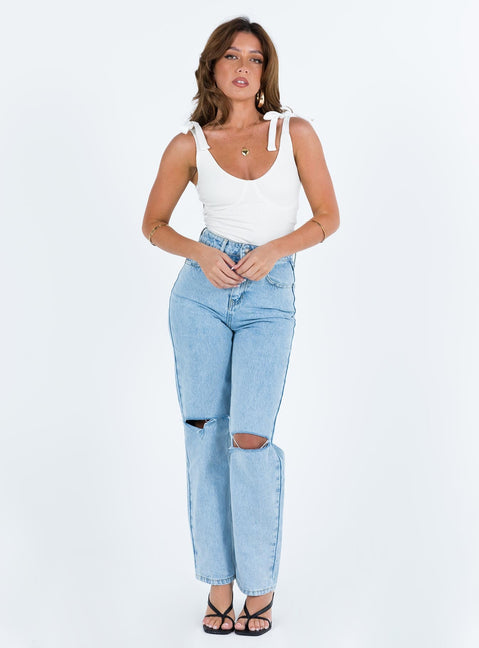 Clove tie up bodysuit white petite