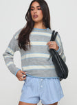 - Multi-color style, round neckline, long sleeve, drop shoulders, ruched at cuffs