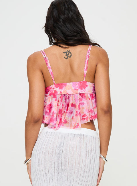 - Floral print mesh crop top