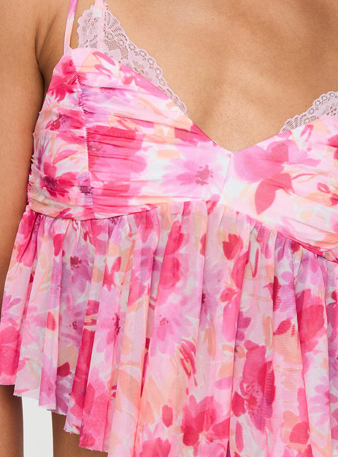 Corella top pink floral