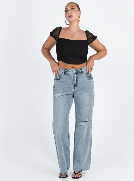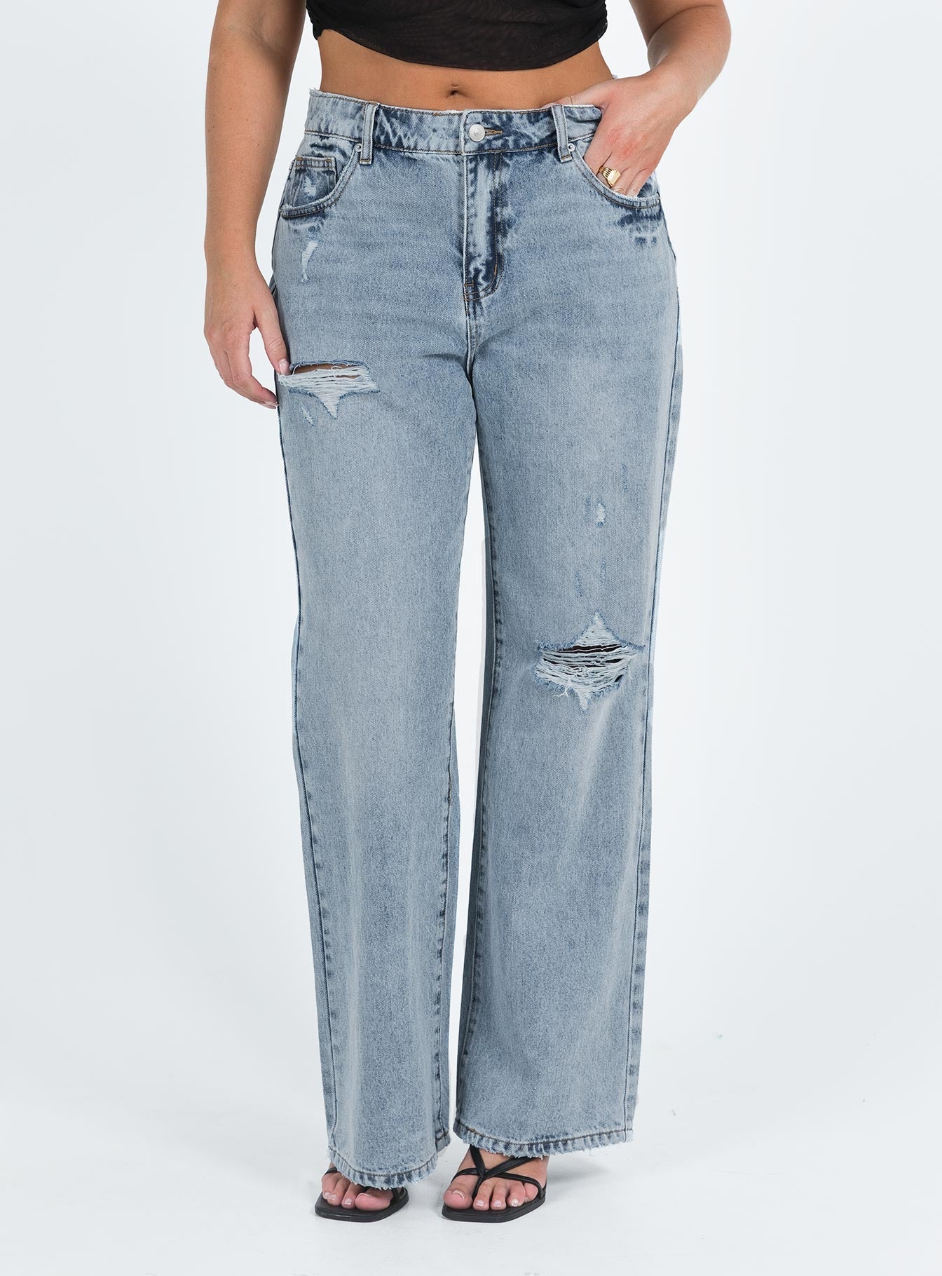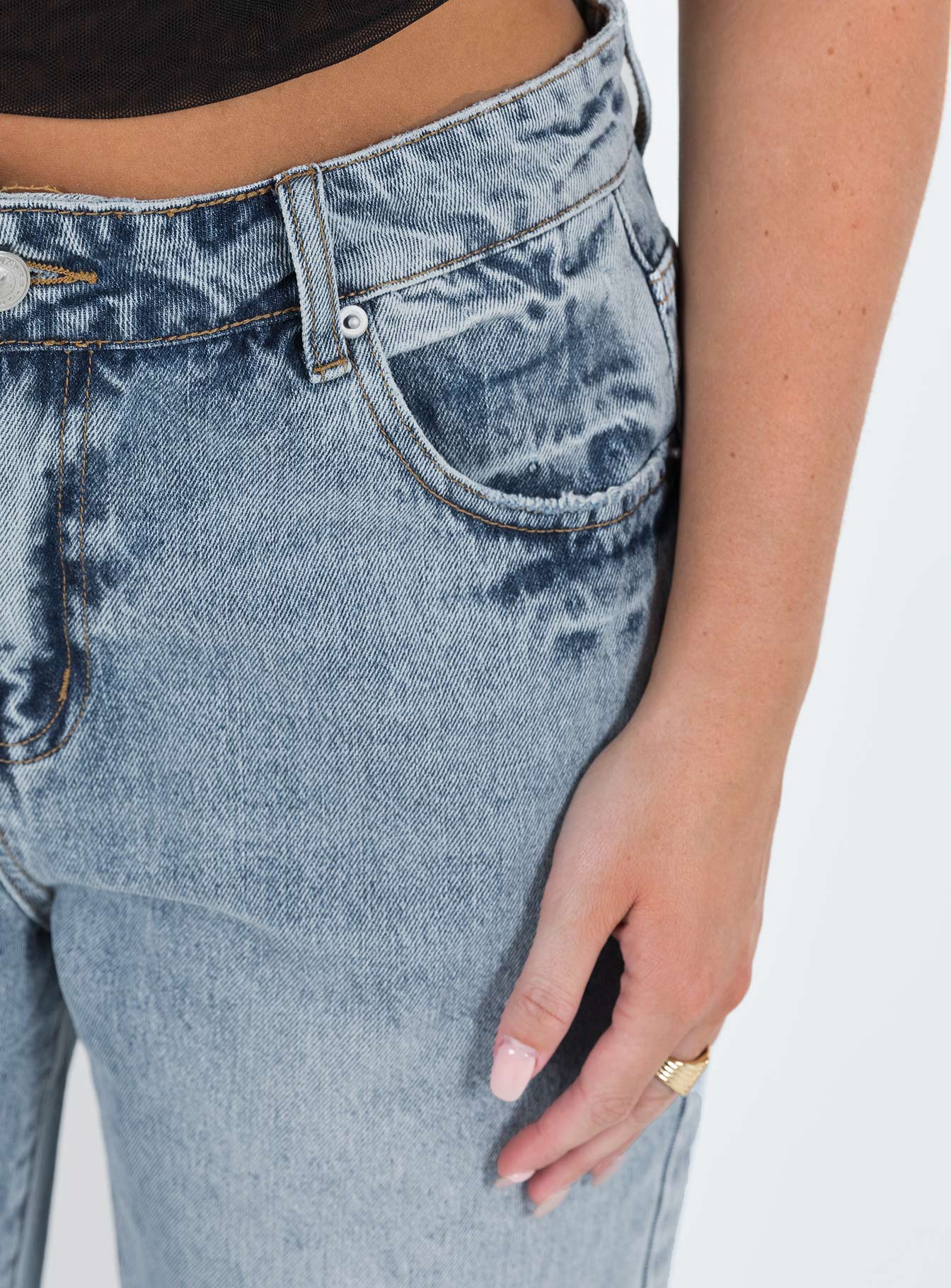 - Mid wash denim