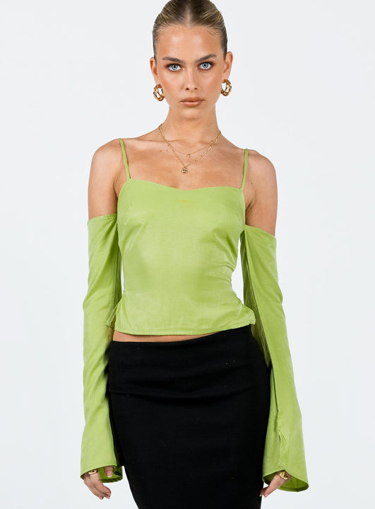product Princess Polly Full Sleeves Square Neck  Cold Shoulder Top Green
