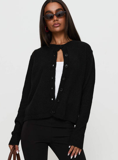 front view of model wearing Princess Polly Denmark Cardigan Black Cropped