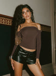 back view of model wearing Princess Polly Dusky Long Sleeve Top Khaki Full Sleeves straight