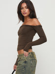 front view of model wearing Princess Polly Dusky Long Sleeve Top Khaki Full Sleeves straight