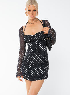 product Princess Polly Square Neck  Dyer Mini Dress Black / Polka Dot