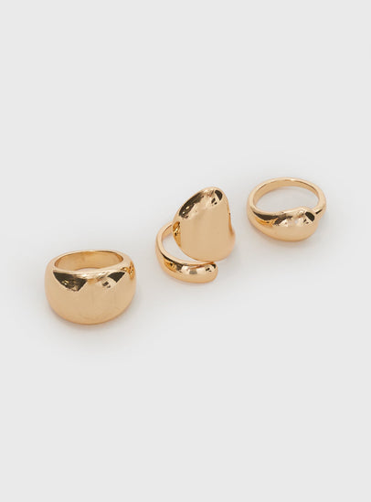Gold-toned ring pack Pack of three, chunky style, lightweight