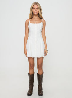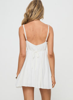 - Adjustable shoulder straps, scooped neckline, button fastening down front, waist tie fastening at back